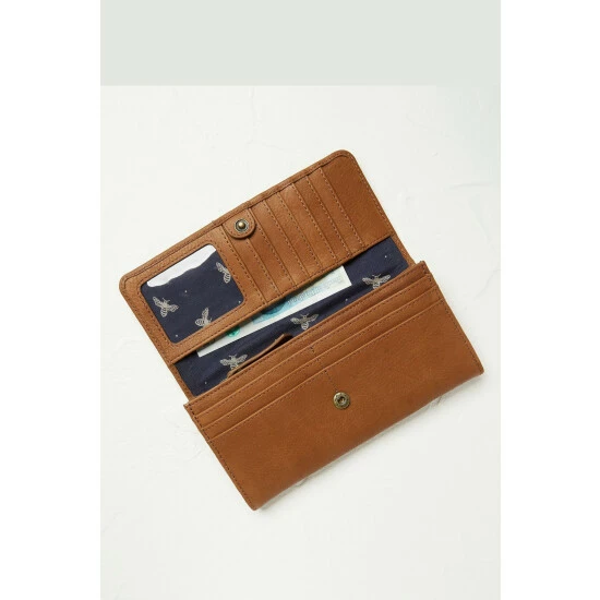 Made from soft tan leather, this matinee purse is really organised and packed with slots and compartments for all your cards, cash, and coins. It has a zip-up compartment and is finished with a stylish bee stud for that extra special touch.