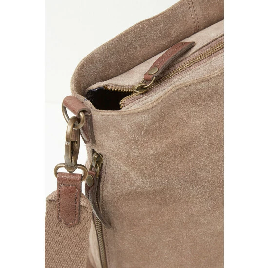 This beautiful suede leather crossbody bag is every bit as stylish as it is practical. With a large zip-up compartment with inner pocket (plus a clever additional side pocket for all those instant essentials), we just love the bold cotton strap that really makes it stand out. Plus the detachable strap also comes with elegant leather and metal clasps so you can adjust it from day to evening looks.