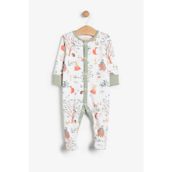Sleepsuit Main 100% Cotton. Cuffs 92% Cotton, 8% Elastane. Bodysuit, Leggings And Hat 100% Cotton. Bib Main 100% Cotton. Back Panel 100% Organic cotton.