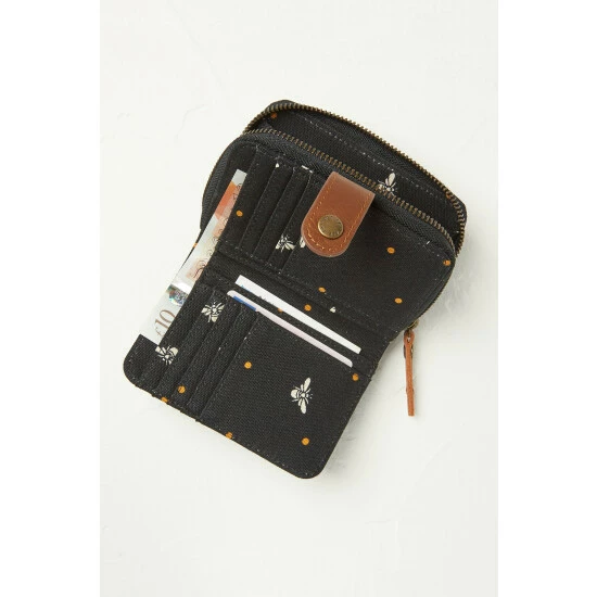 This gorgeous bee spot purse has enough space for all of your coins, notes and cards, and it neatly folds together with a sturdy and elegant leather strap. Perfect!