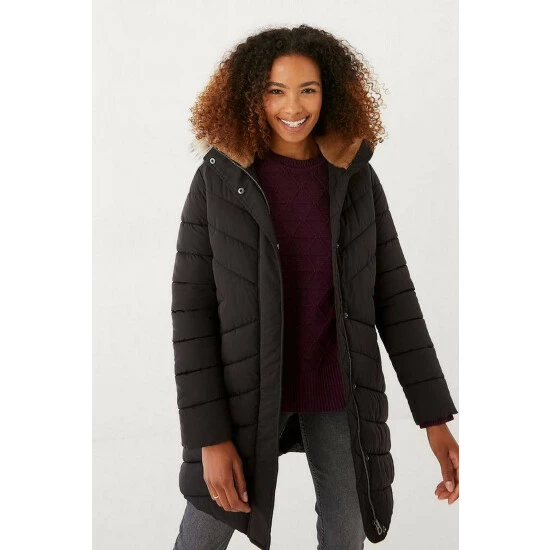 This puffer jacket is sure to be your new go-to layer for every cold-weather adventure. With spacious pockets, a faux fur hood, and a fluffy inner lining that’s made from polyester, you’ll be zipping into warmth every time.