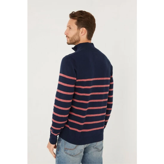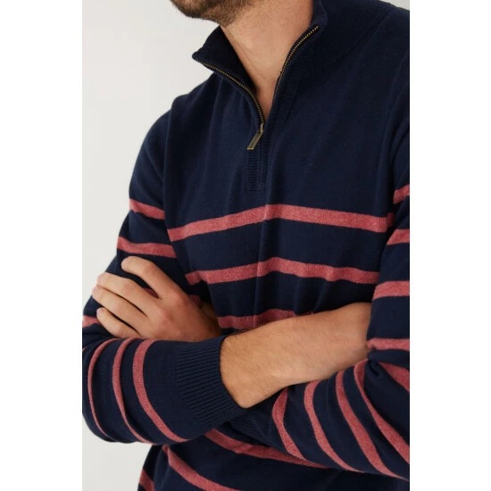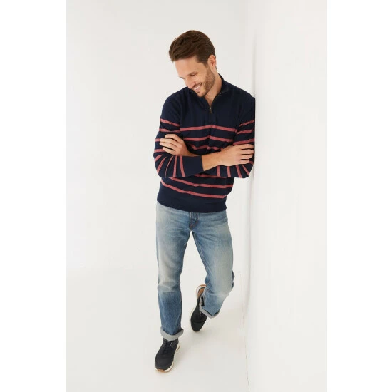 With a cool stripe design and classic zipped half neck, this jumper is warm, comfortable and looks good with anything. It’s made from soft cotton with a touch of wool in the fabric for extra cosiness when the temperature drops. Keep it casual with your favourite jeans or dress it up a notch with chinos and a smart pair of shoes.