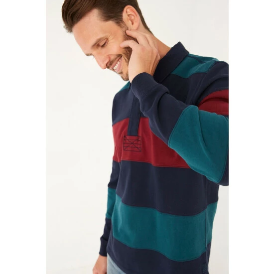 From the stitch detailing and snug cuffs to the vibrant striped print, this long-sleeve rugby shirt is a great addition to your wardrobe. It comes in a comfortable fit with a button fastening neckline and collar, and is built to last thanks to the soft yet hard-wearing material.