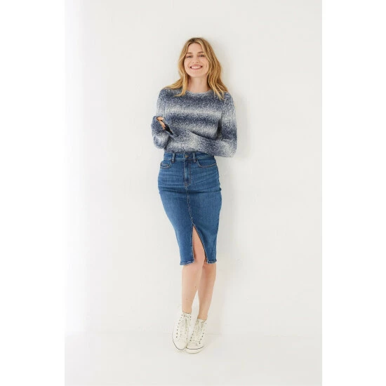 Update your cold-weather wardrobe with our Darcey Stripe Jumper. Crafted from a supersoft, comfortable cotton mix, it looks just as good with jeans as it does worn over a white blouse with your favourite midi skirt.