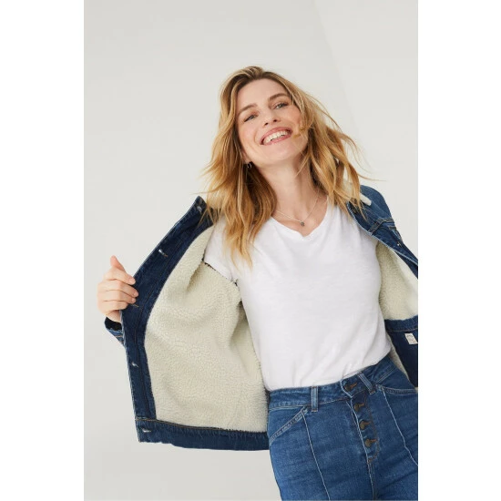 Every wardrobe needs a timeless denim jacket. This one has an extra special twist; the collar’s lined with soft, cosy borg for added comfort and style. Wear it with anything this staple goes with everything.