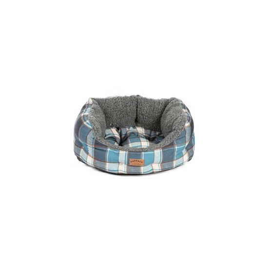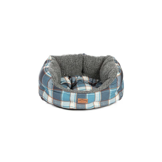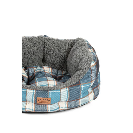 Made fully in the UK, the FatFace collection is filled with 100% recycled fibre, made from plastic bottles. A warm and snuggly check design, with tones of blue and a highlight of mustard, printed on 100% brushed cotton for a super-soft feel. Paired with a soft dark grey Sherpa fleece, which is knitted in the UK from 100% recycled fibres. Deluxe Slumber Beds available in 3 sizes S (41 x 33 x 26cm) M (53 x 41 x 30cm) L (61 x 51 x 36cm). FatFace cotton products support more sustainable cotton farming.
