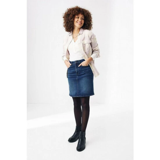 Made from supersoft yet hard-wearing denim, this skirt falls above the knee and comes with button up and zip fastening, you’re sure to love. Keep it casual with a graphic t-shirt, and layer up with a cardigan tights when the chill sets in.