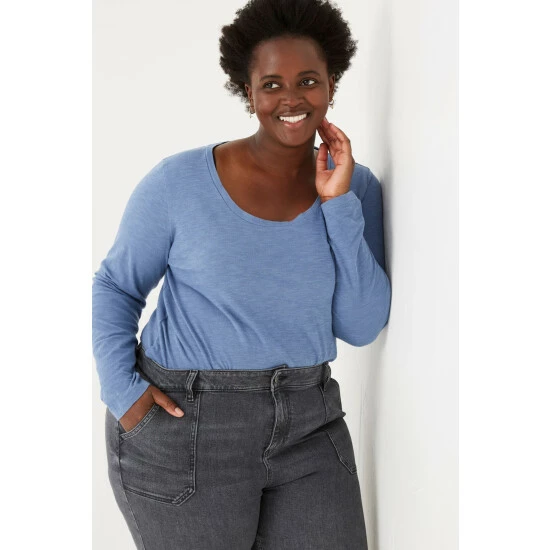 A simple scoop neck tee that everyone needs in their wardrobe. Lightweight, fine, long-sleeved and supersoft, this organic, laidback tee is a great addition to your everyday outfit.