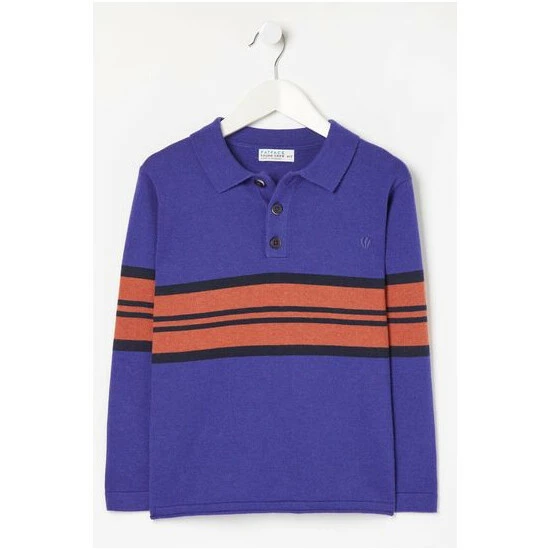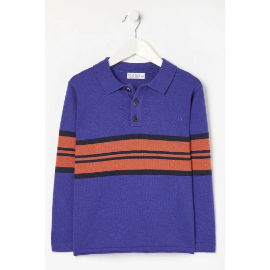 In a super comfy and relaxed fit, this knitted polo top is crafted from soft durable cotton with a ribbed collar, a colourful stripe design and buttons at the top. Pair it with jeans for special occasions or with joggers and trainers for his many adventures.
