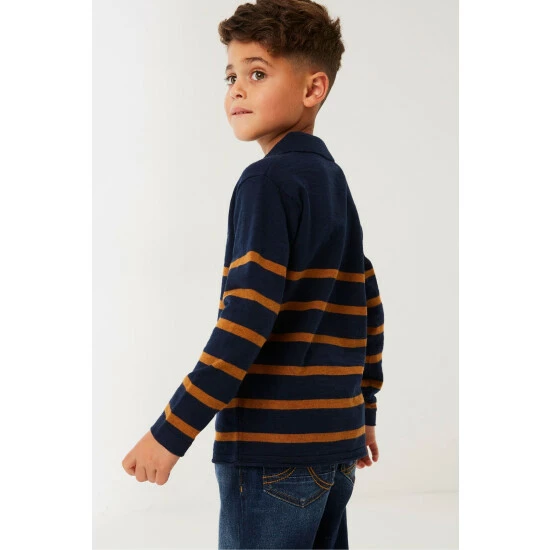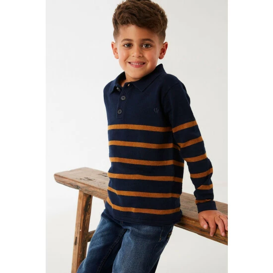 In a super comfy and relaxed fit, this knitted polo top is crafted from soft durable cotton with a ribbed collar, a colourful stripe design and buttons at the top. Pair it with jeans for special occasions or with joggers and trainers for his many adventures.