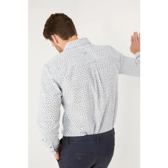 Looking for a reliable, versatile style this season? This leaf print shirt is perfect. Made from supersoft, breathable cotton for comfort, it’s finished with a single chest pocket, rounded hems, and adjustable cuffs for your ideal fit. Try styling with chinos for a smart weekend look.