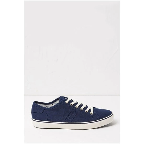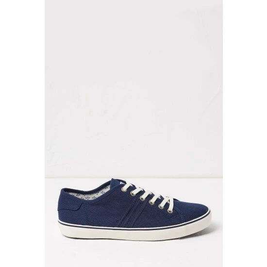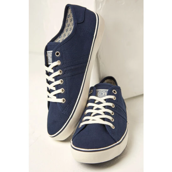 Classic style is at your feet with these navy canvas lace-up trainers from FatFace. Lightweight and breathable textured upper and flexible rubber sole for grip on-the-go. Style with turned-up jeans and a relaxed cotton shirt for laid-back brunch date vibes.
