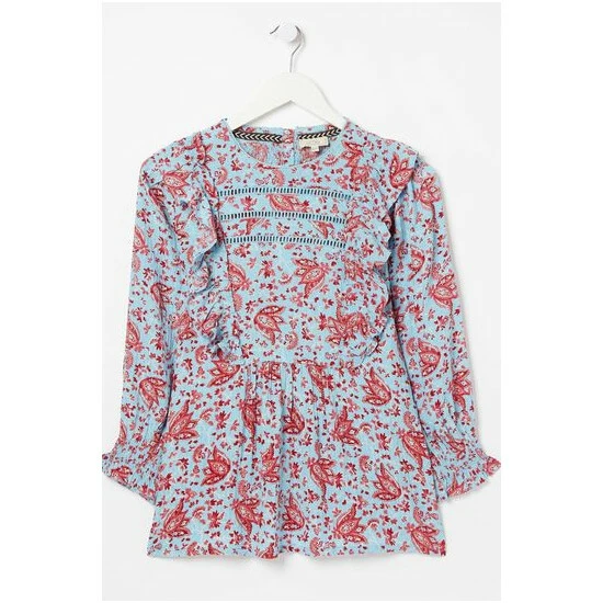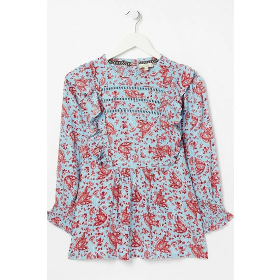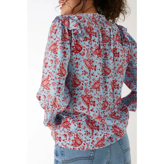 Stand out from the crowd in this beautiful statement floral blouse. It features long cuffed sleeves, ruffle and hem detailing, and a eye-catching bold print. Complete the look with your go-to jeans and some heels or flats depending on the occasion.