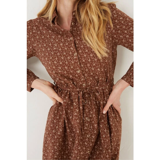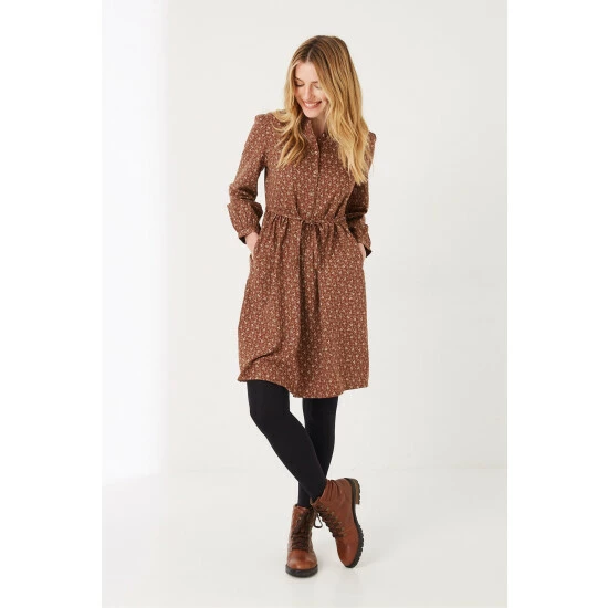 Meet your new favourite ‘do-it-all’ dress. With a beautiful printed design, this knee-length shirt dress is soft, flattering and looks super-stylish with tights and chunky boots.