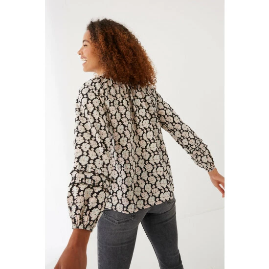 Our printed Bude blouse is perfect for dressing up with leggings or skinny jeans. With frilly detailing and its relaxed, super-comfortable fit, it’s ready to turn heads wherever you go.