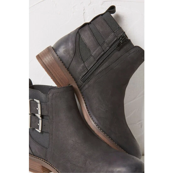 Finish off your casual autumn wardrobe with these black leather Chelsea boots. The side zip detail ensures they slip on easily and the double strap detailing around the ankle adds a touch of understated ruggedness. From jeans and trousers to skirts and dresses; pair them with anything.