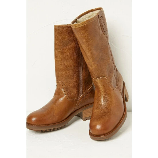 With their mid-length height and smooth leather construction, our Ellie Block Heel Mid Boots look good with anything. They feature a soft fleecy lining and chunky heels that are easy to walk in.