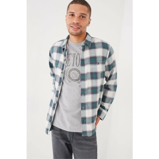Layer up your style this season with our Buffalo check shirt. Crafted from a soft brushed cotton for comfortable fit that’ll last. This features a chunky check pattern, twin chest pockets, button adjustable cuff and contrasting inside collar. Try layering up with a graphic tee for a relaxed weekend style.