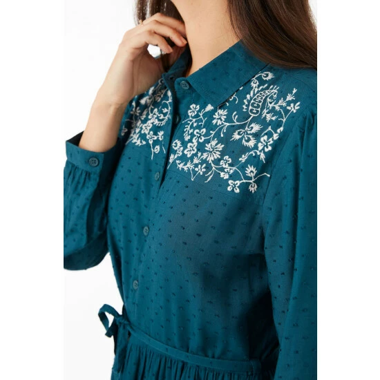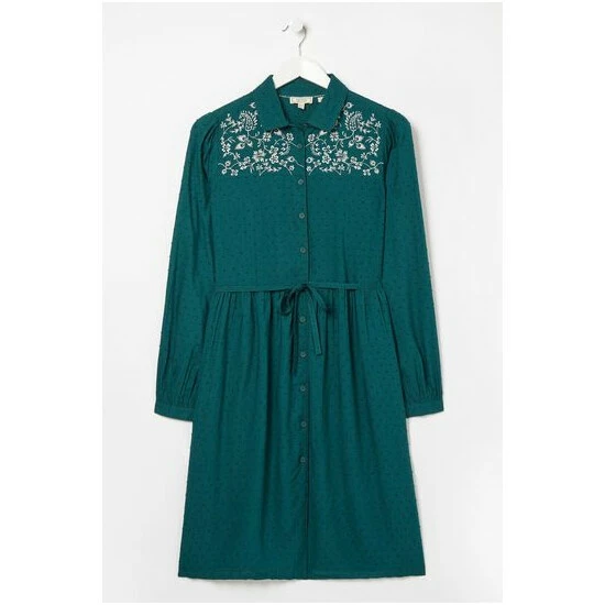Meet your new favourite ‘do-it-all’ dress. With beautiful embroidered daisies around the neck, this knee-length shirt dress is soft, flattering and looks super-stylish with tights and chunky boots.