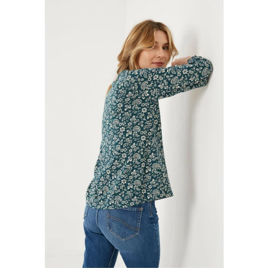 Made from supersoft cotton-modal, this beautiful printed top is ready to turn heads. The flattering fit and full sleeves with gathered cuffs make it so easy to dress up for catch-ups with friends.