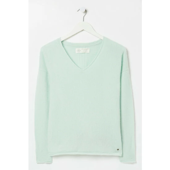 Fat Face FatFace Green Kate Cashmere V-Neck Jumper