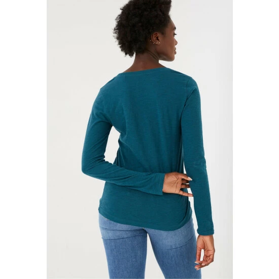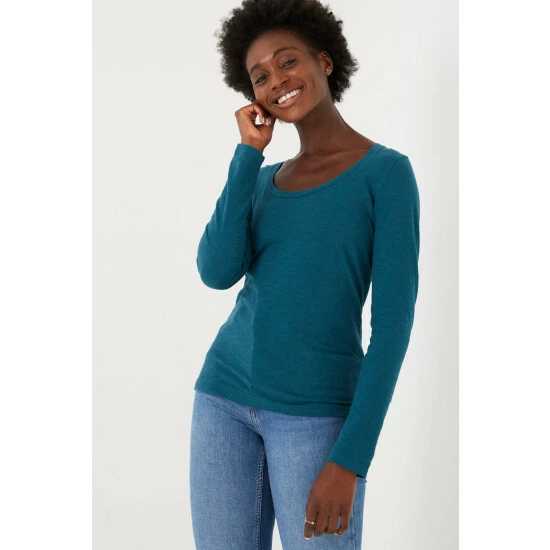 A simple scoop neck tee that everyone needs in their wardrobe. Lightweight, fine, long-sleeved and supersoft, this organic, laidback tee is a great addition to your everyday outfit.