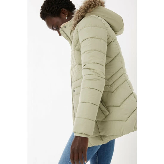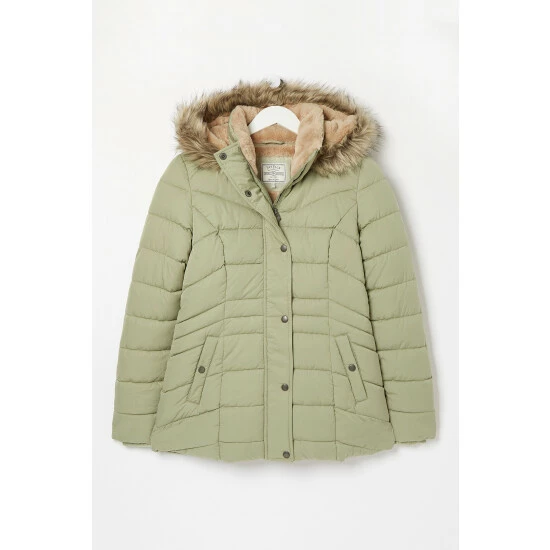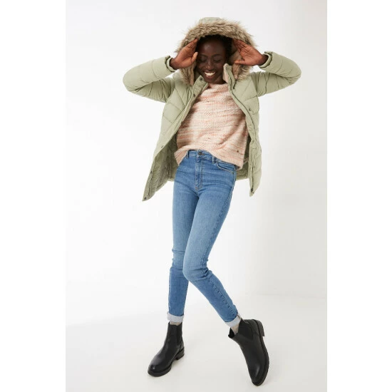 Keep the chill at bay with our oh-so-warm Lydia Puffer Coat. This coat features a padded design that’ll keep you nice and toasty all day long, large side pockets, zip and popper buttons, elasticated cuffs, and a faux fur trimmed hood – perfect!