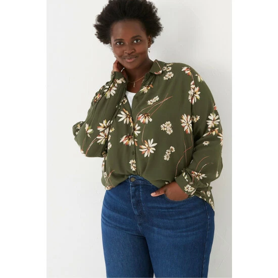 Let this gorgeous blouse take you from AM to PM. Thanks to it’s flattering fit and all-over blossom print, it can be styled up for the office or dressed down for a lunch date. It features button up cuffs, a deep v-neckline, cosy collar and button through fastening. Team it with a skirt and boots or jeans and trainers.