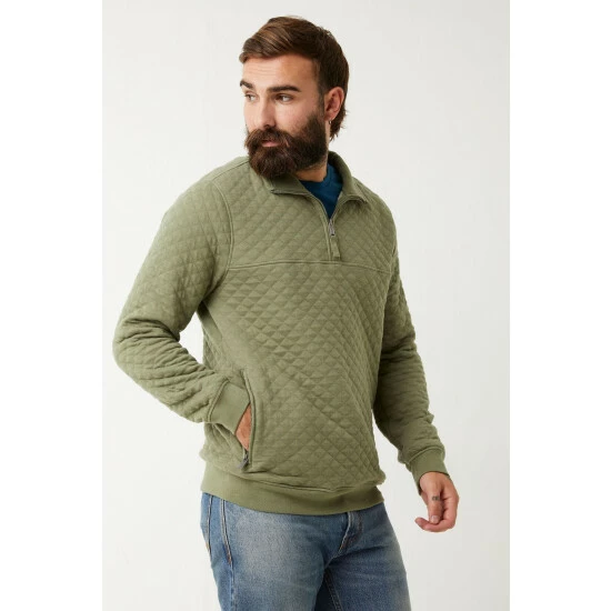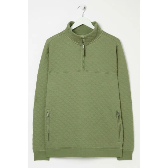 Fat Face FatFace Green Quilted Half Neck Sweatshirt