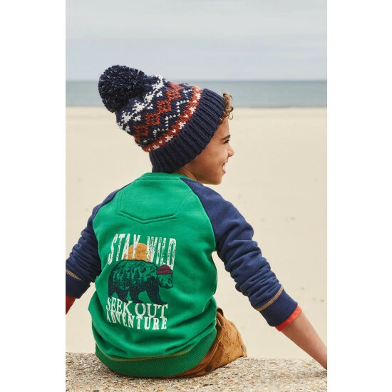 This adventure themed sweat is perfect for your little nature lover. It’s fun, colourful, made with a supersoft cotton and polyester blend, and comes in a comfortable fit with a stretch hem and cuffs to lock out the cold. Not forgetting the awesome ‘Stay Wild and Seek Out Adventure’ slogan print.