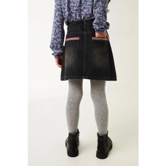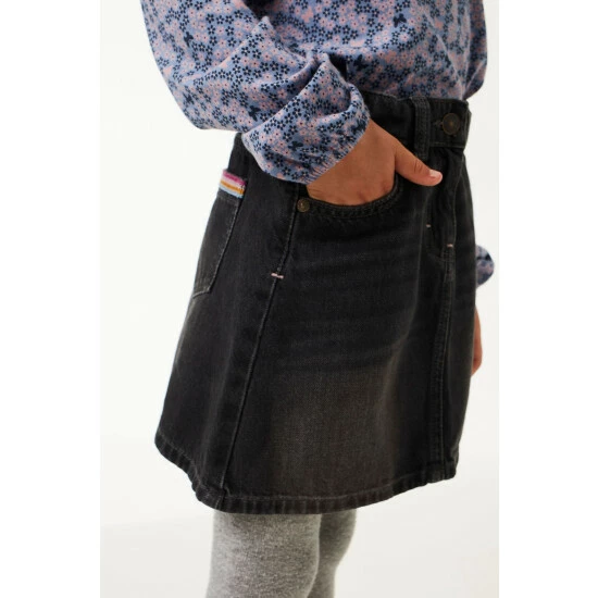 This durable denim skirt will look great with tights and boots when the temperature drops. It features a soft A-line flare, as well as plenty of pockets for all her treasures. Plus, there’s a sweet rainbow trim on the back pocket to add a touch of colour.
