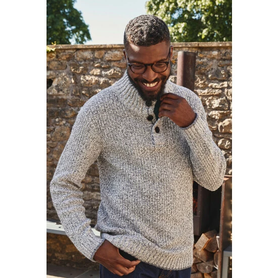 Chunky, bold and warm. This half neck jumper is just what you need for the colder months. Crafted with 10% wool to give you the perfect balance of warmth and style. Featuring a high-right neckline with button fastening to block out the chill and ribbed hems for a fitted look. Style this with a trusty pair of jeans for a classic look.