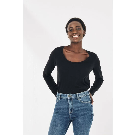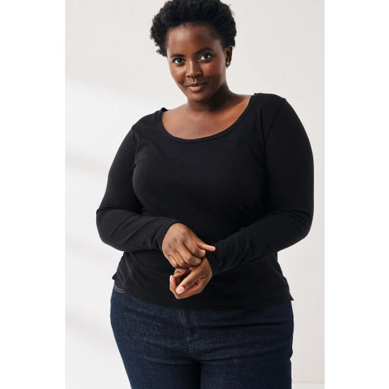 A simple scoop neck tee that everyone needs in their wardrobe. Lightweight, fine, long-sleeved and supersoft, this organic, laidback tee is a great addition to your everyday outfit.