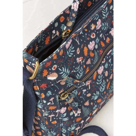 Great for packing the daily essentials, this pretty woodland print crossbody bag is compact, organised and ready for a busy day. With a zipped-up main compartment and handy ‘easy grab’ front zip pocket, it will keep your belongings extra safe. And the hard wearing cotton material and extra sturdy crossbody strap means it will last longer.