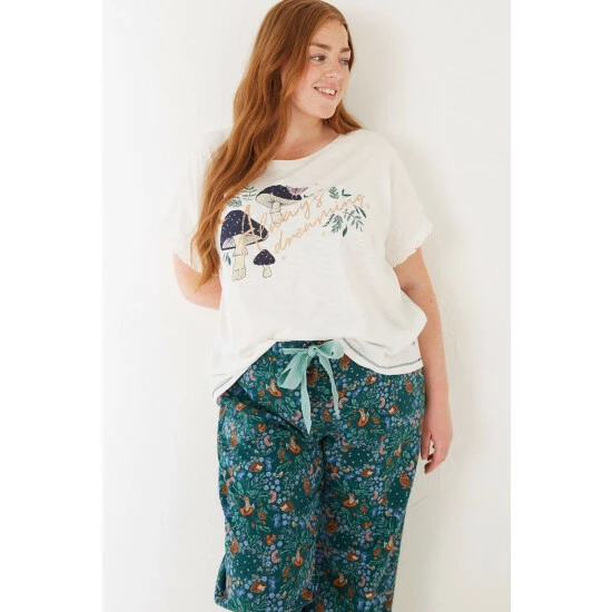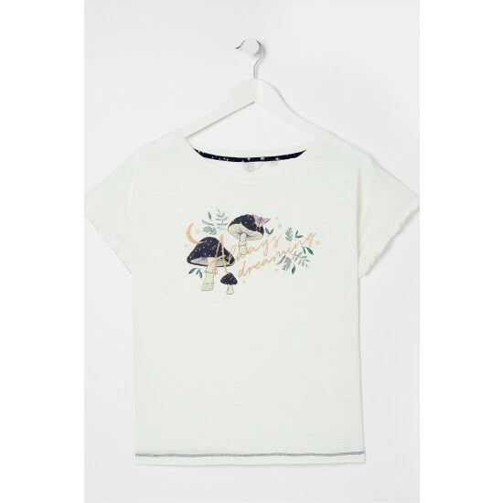 Supersoft, comfy and perfect for everything from lazy days to cosy nights, this short sleeve graphic top features beautiful trims for a pretty look. It’s made with a durable and breathable cotton and modal blend, and comes in a comfortable fit. Pair it with our classic lounge pants for a pretty bed-time look or with your favourite work from home bottoms.
