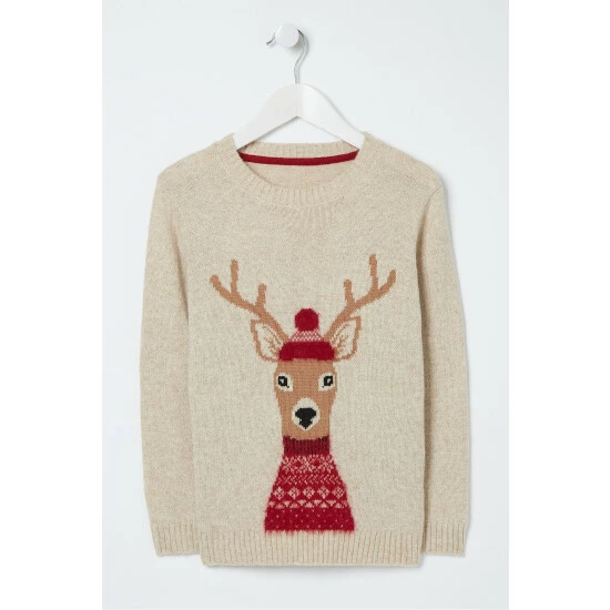 Fat Face FatFace Natural Delilah Deer Intarsia Crew