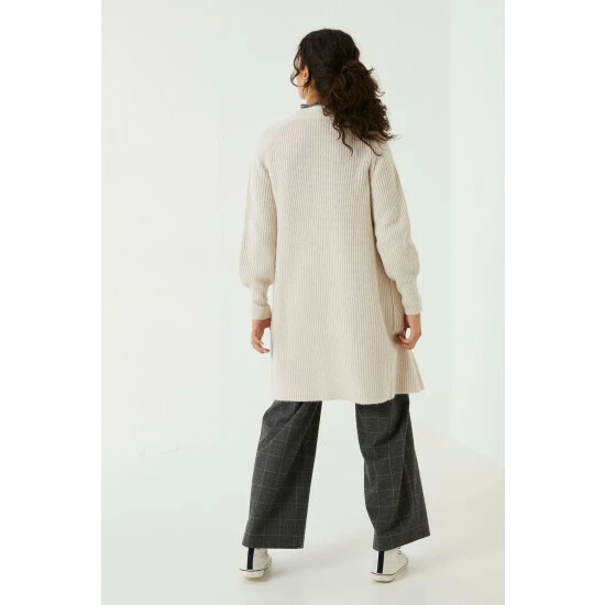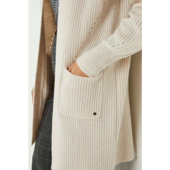 This edge-to-edge cardigan has a flowing and flattering longline shape that is soft and warm, while also giving a great silhouette that is so versatile it can work beautifully with denim and dresses. With a soft touch of wool that makes it extra warm and cosy – plus two front pockets to keep your hands snug as well – this is an easy throw on style that can work for day and night.
