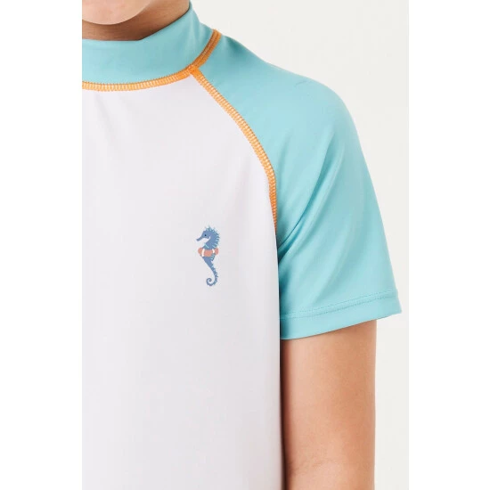 Enjoy watching them having fun in the sun, while being protected this summer thanks to our lightweight, and super comfy rash vest. Complete with short raglan sleeves, zip fastening at the back for easy dressing, and a sweet seahorse print on the chest.