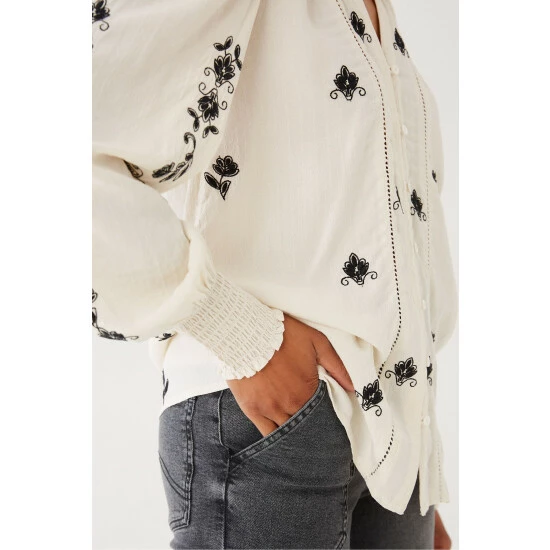 This extra-special blouse is perfect for any occasion. Not only is it light and breathable; there’s a beautiful mix of embroidery and lace detailing through the fabric that makes this top oh-so pretty.