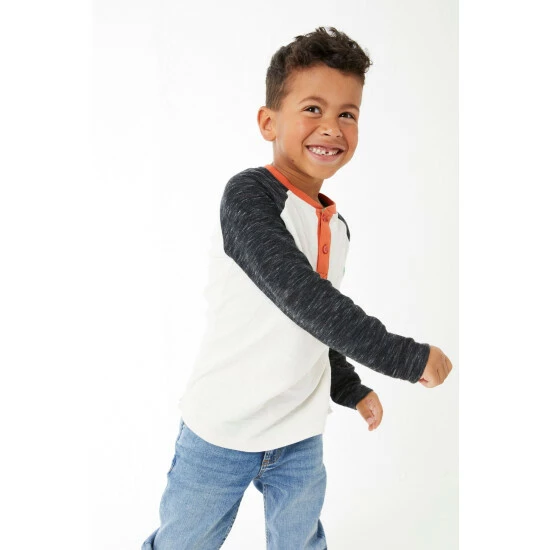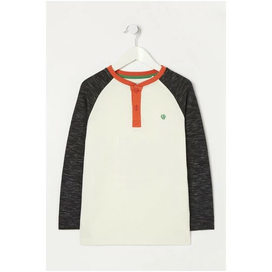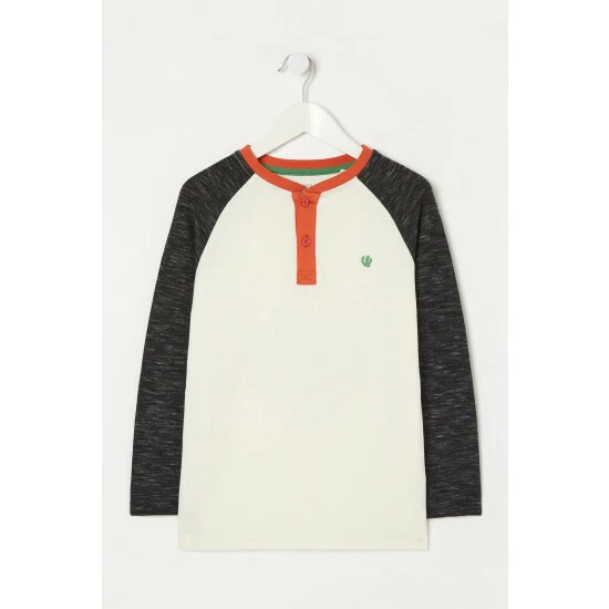 In a classic Henley style, this raglan t-shirt with a super cool graphic is one that no wardrobe should be without. We’ve made ours with stylish textured cotton and finished with a button up neckline, embroidered chest logo and a ‘Rolling Since 1988’ patch on the hem. Style it with jeans and trainers, and he’s good to go!