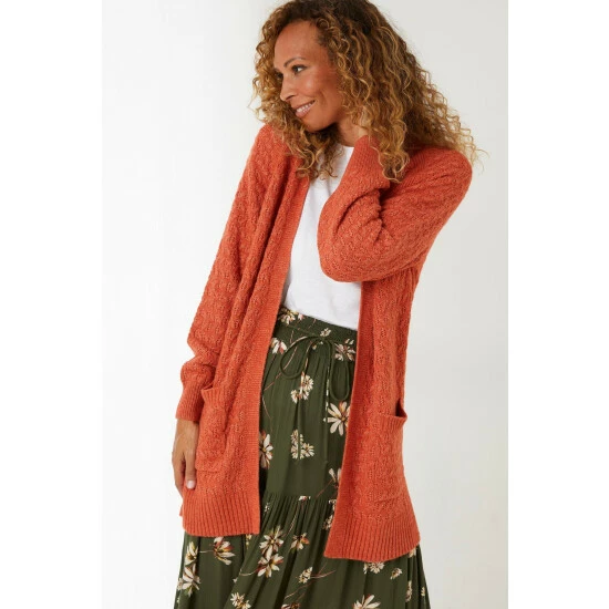 With a flattering longline shape and a beautifully textured knit, this cardigan is the perfect layering piece for the colder months. It’s got split sides that add style while ensuring a great fit and we’ve added side pockets for extra cosiness. Dresses, jeans, skirts – wear it with anything, it’s so versatile.