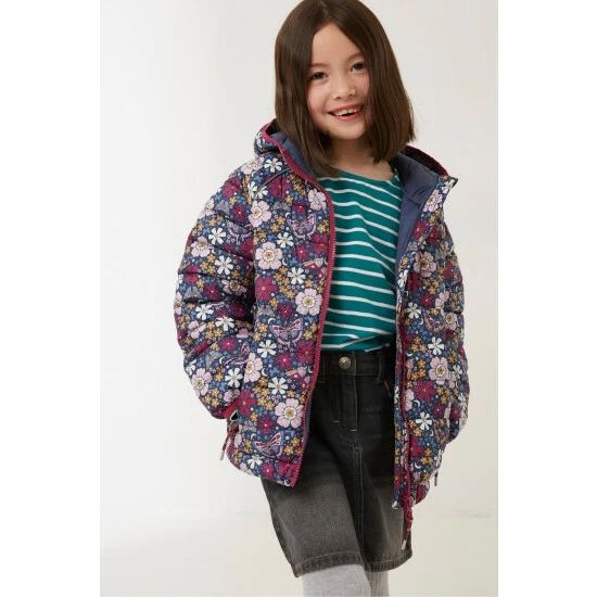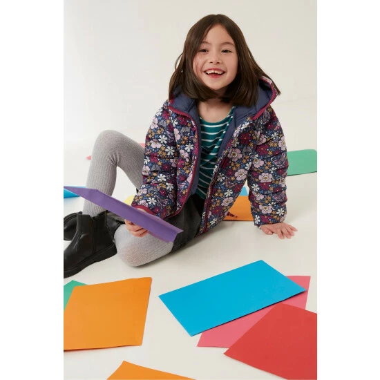 Never let rain stop play. Brave the elements with our super pretty shower resistant coat, complete with zip through fastening for easy dressing, side pockets, a comfy hood, and a hand-me-down label so that when your little one has outgrown theirs, they can pass it on to someone else to love. She’ll love the awesome interior graphic. Layer it over a simple tee and jeans, and she s good to go.