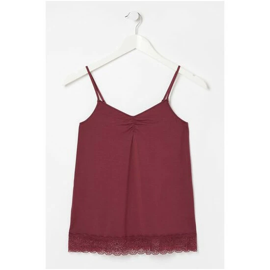 Made from supersoft materials, this vest top is a must-have for every wardrobe. It features thin straps, ruched detailing on the chest and a gorgeous delicate lace trim… what’s not to love? It’s perfect for lounging around the house or as a layer under your clothes to keep you warm.