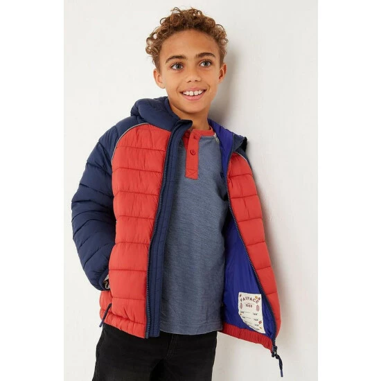 He’ll absolutely love this padded jacket during the colder months. With a handy zip, a hood to keep him toasty, and a fun print on the inside, he’ll want to wear this piece every time the temperature drops.