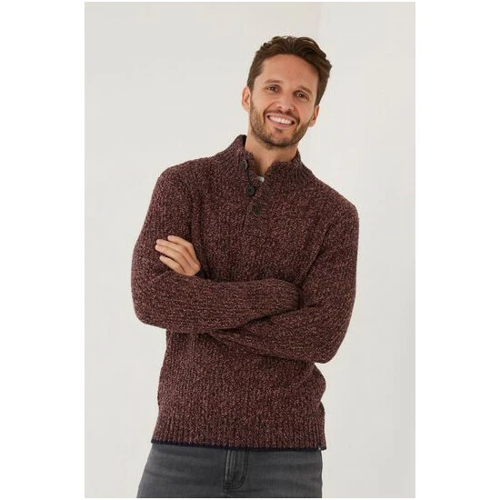 Chunky, bold and warm. This half neck jumper is just what you need for the colder months. Crafted with 10% wool to give you the perfect balance of warmth and style. Featuring a high-right neckline with button fastening to block out the chill and ribbed hems for a fitted look. Style this with a trusty pair of jeans for a classic look.