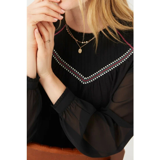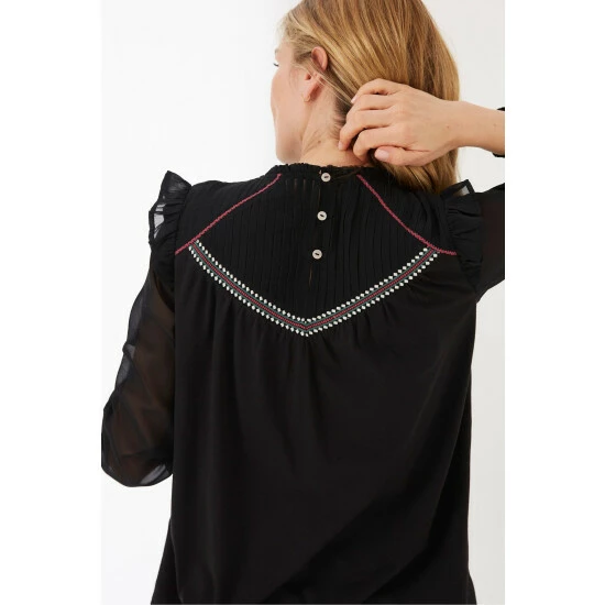 Make a style statement this season with our Ruby top. With a flattering fit, embroidered neckline and standout shoulder detailing, this top can be worn for work and play. The cotton and modal mix fabric ensure a soft and comfortable feel, while the longer line and gathered sleeves give it a great shape that is ready for any occasion.