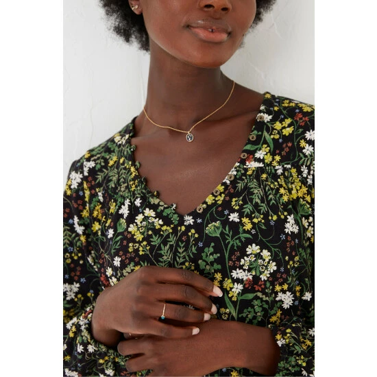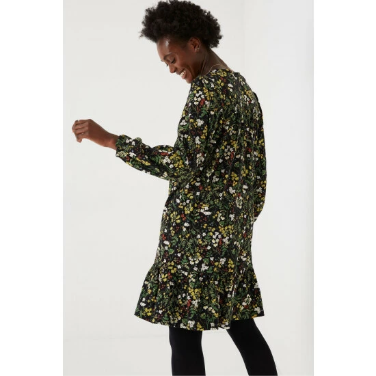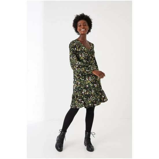 Say hello to this easy going & super versatile jersey dress. In a super flattering fit, it features a gorgeous forest print, rounded lower neckline and flowy bottom. Style it with your favourite boots and layer with a cardigan when the temperature drops.