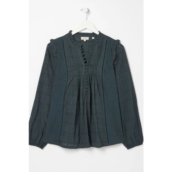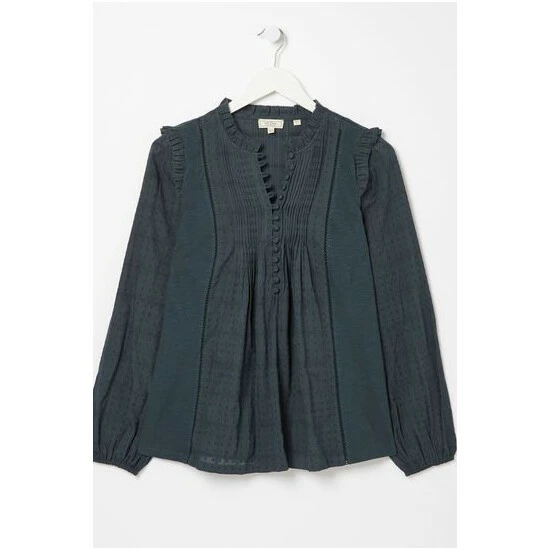 Packed with pretty detailing, front and back. It comes with a 3/4 button up front, ruched panelling and a textured finish. This stylish blouse is perfect for casual days or dressing up for special occasions.