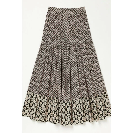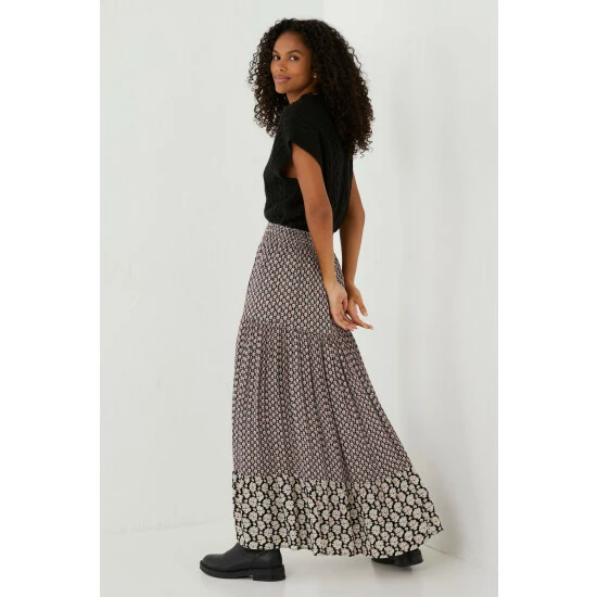 Made from light and breathable viscose, this maxi skirt is oh-so pretty and just as comfortable. The flattering ankle length and contrasting print detailing make it easy to wear with your favourite tops, shirts and blouses.